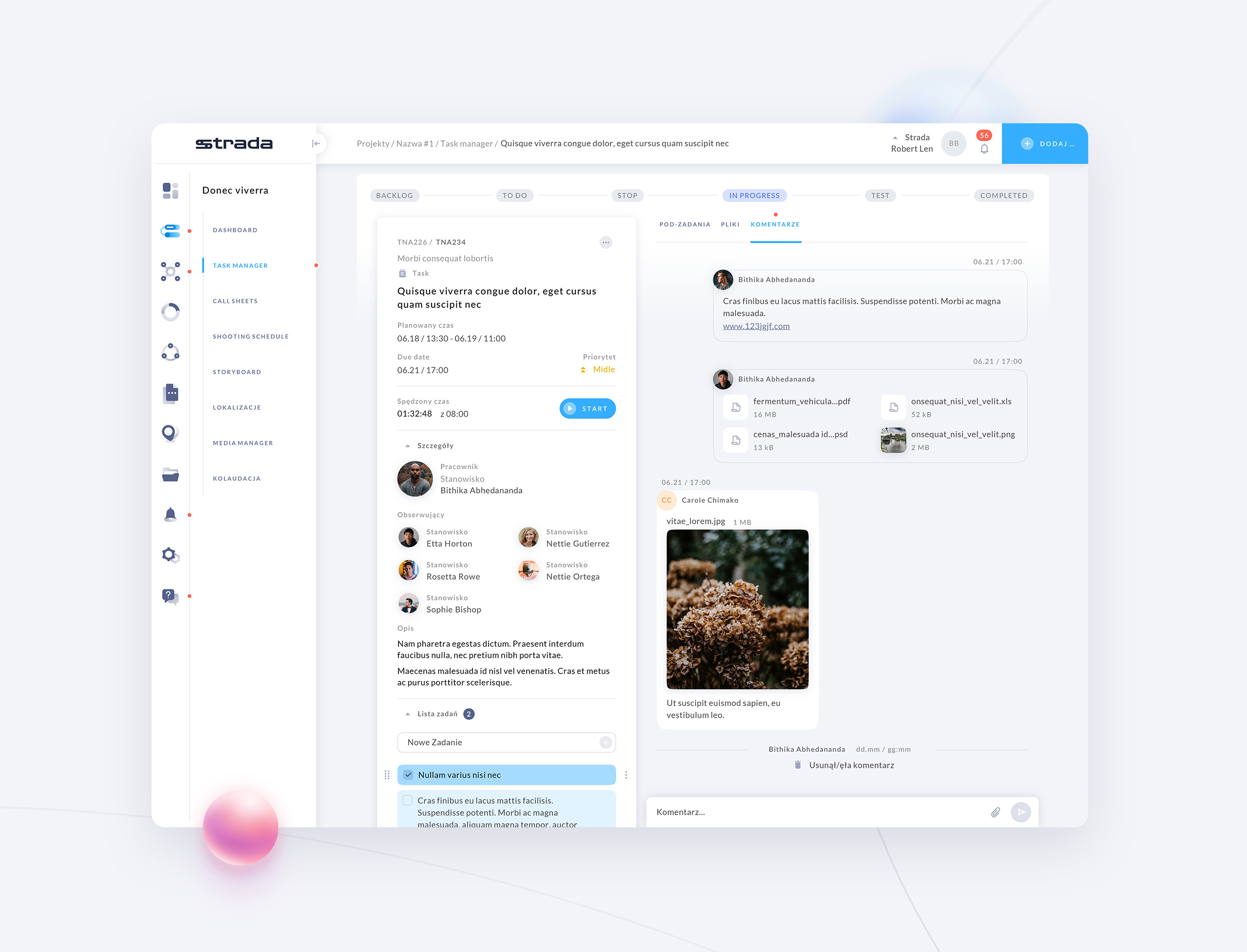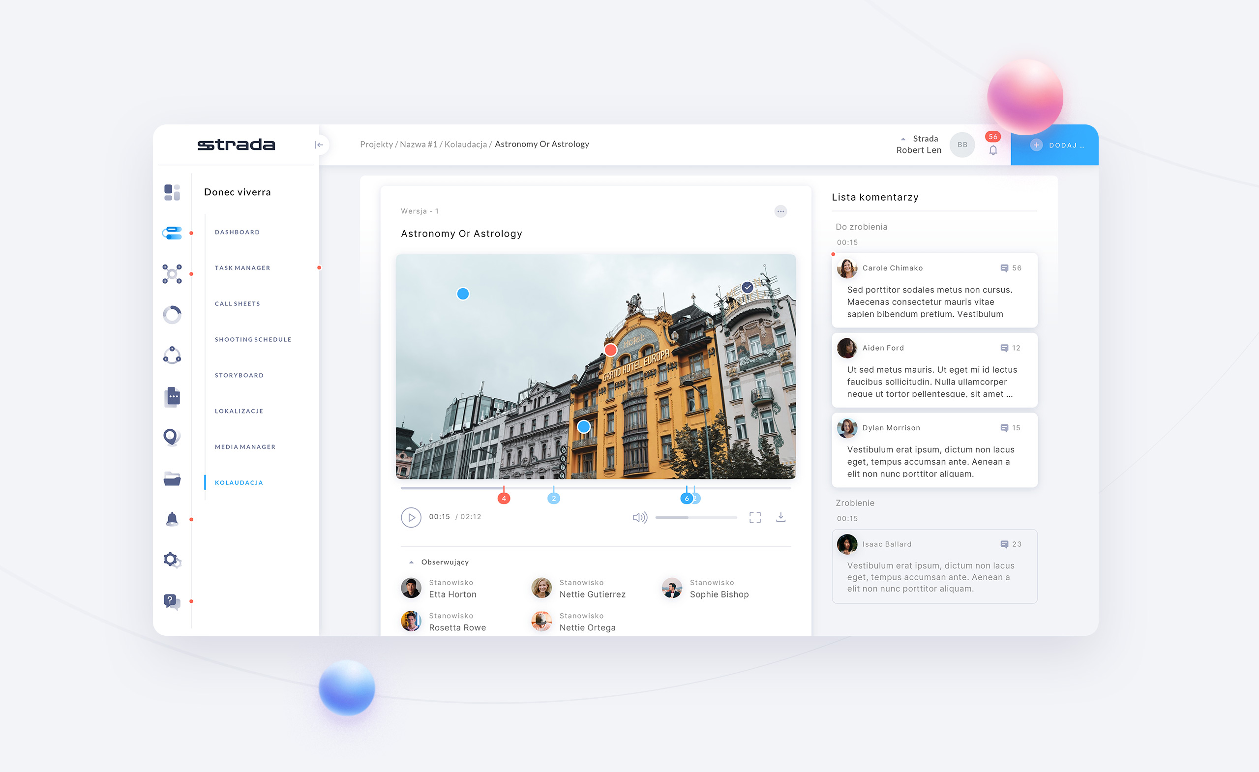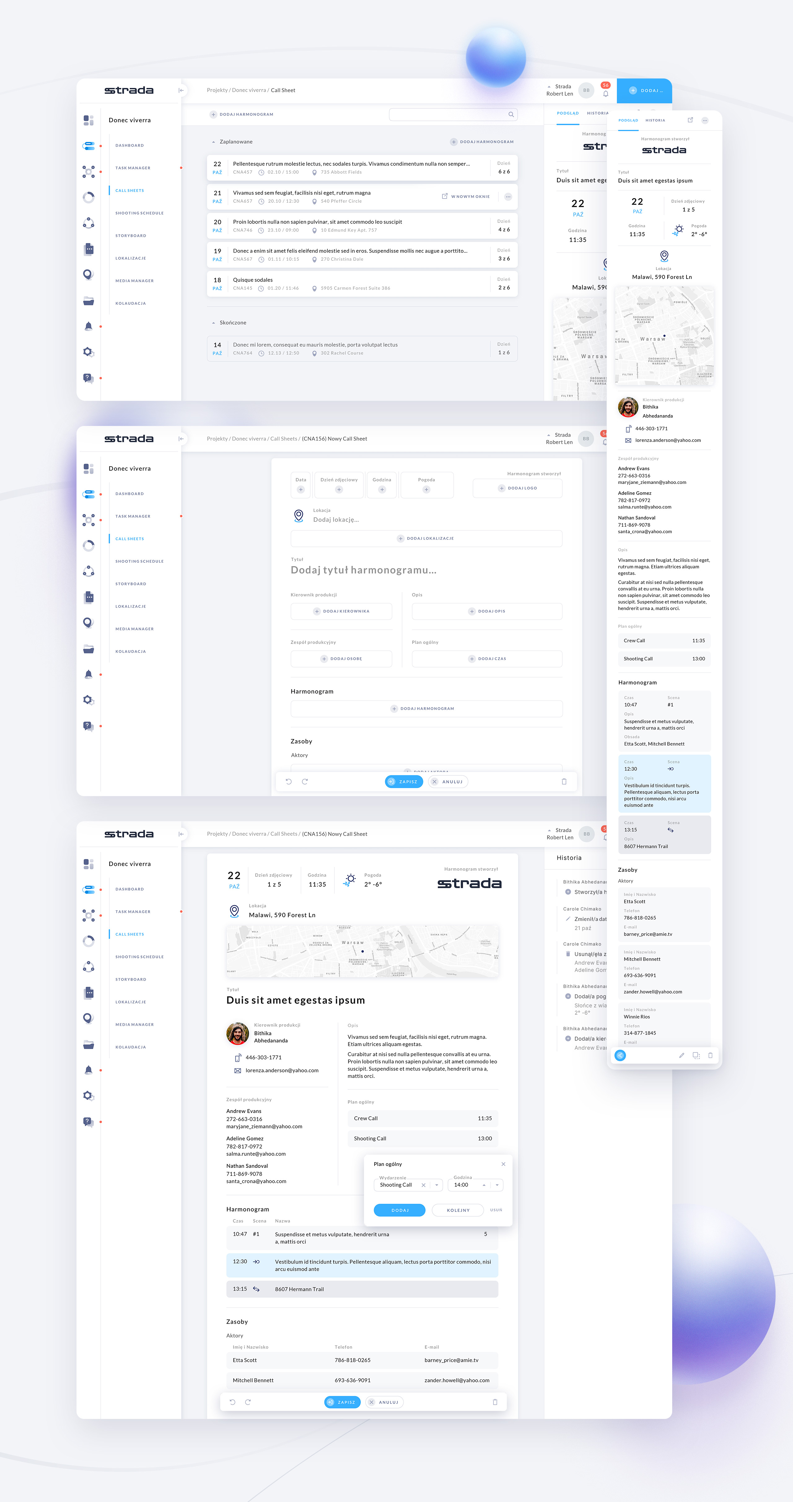 Developing the vision and concept for a web application in collaboration with the owner to integrate all stages of a shooting plan (including storyboard, shooting schedule, and call sheets) into a single task manager with push notifications for all participants.